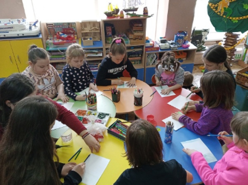 Под руководством библиотекаря дети изобразили цветочное поле, которое запомнили в прошлом году.
