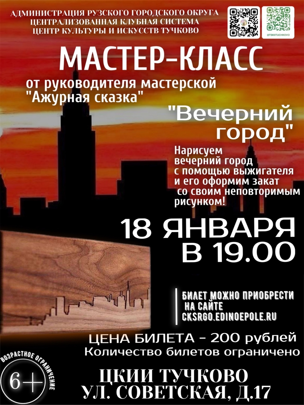 18 января в Тучковском центре культуры и искусств Рузского городского округа состоится мастер-класс по декоративно-прикладному искусству "Вечерний город".