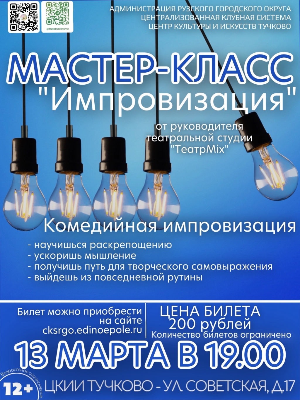 13 марта в Тучковском центре культуры и искусств Рузского городского округа состоится мастер-класс "Импровизация".