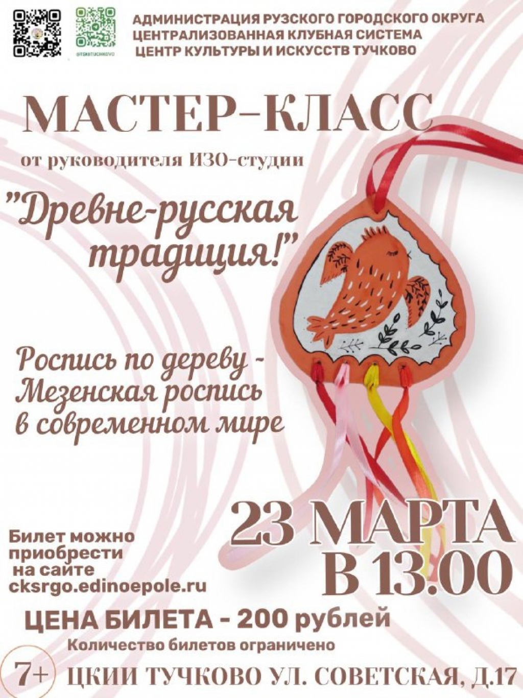 23 марта в Тучковском центре культуры и искусств Рузского городского округа состоится мастер-класс "Древнерусская традиция".