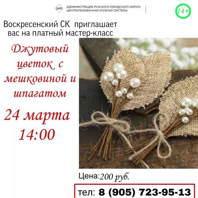 24 марта в Воскресенском сельском клубе Рузского городского округа состоится творческое занятие.