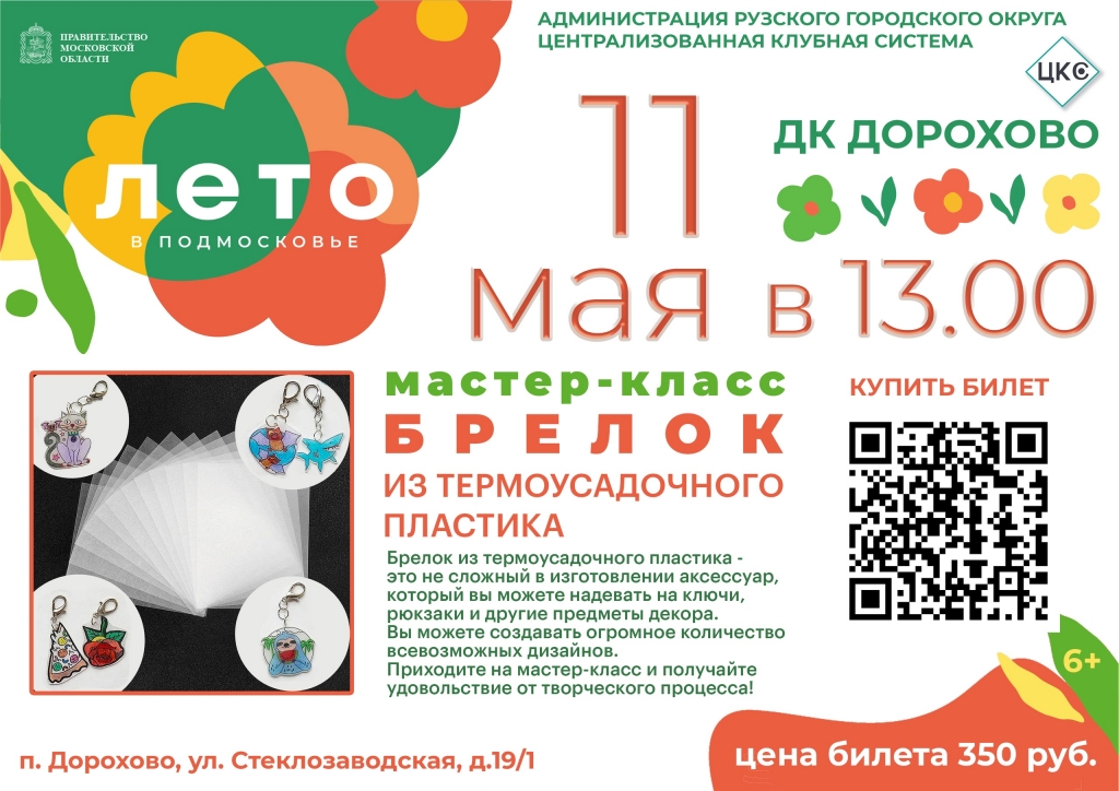 11 мая в Дороховском доме культуры Рузского городского округа состоится творческое занятие.