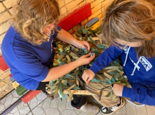 Активисты «Молодой Гвардии Единой России» совместно с общественной организацией «Рузское Земство» плетут маскировочные сети, предназначенные для отправки на фронт.